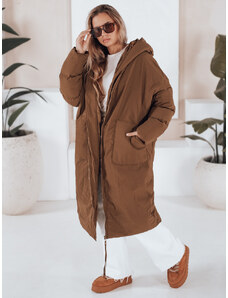 MladaModa Prošívaná zimní oversize bunda s kapucí a kapsami model 5419 hnědá