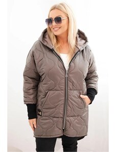 Kesi Hnědá dámská plus size prošívaná bunda s kapucí a manžetami