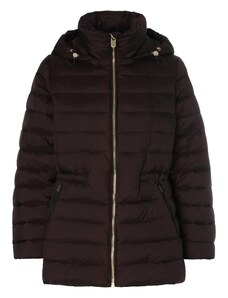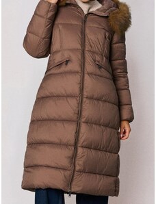 Perso Hnědý dámský prošívaný péřový kabát s bambulkou na kapsy Hnědá