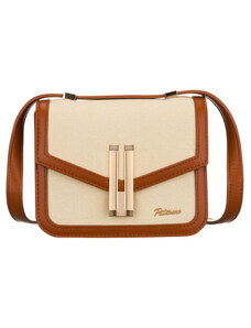 Peterson Béžovo-hnědá dámská crossbody kabelka z kůže a plátna Hnědá