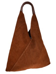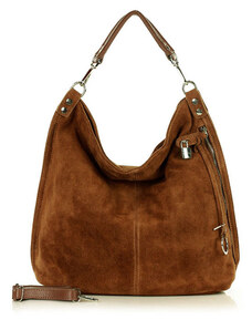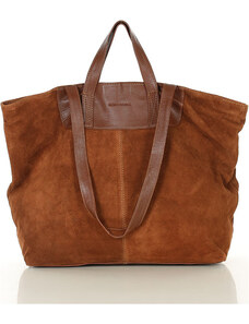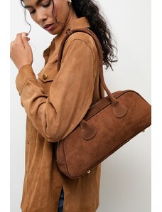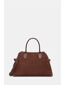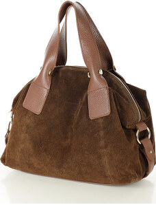 Velká hnědá semišová kožená kabelka s dvojitými uchy - MARCO MAZZINI