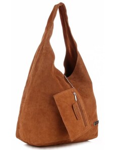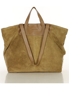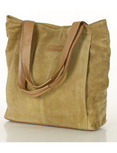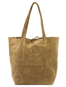 SOLIER Camel dámská semišová shopper kabelka Béžová