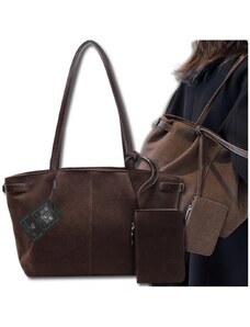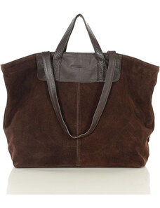 MARCO MAZZINI Tmavě hnědá semišová shopper kabelka