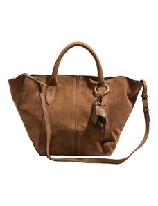 MARCO MAZZINI velká semišová kožená shopper kabelka s kapsou hnědá