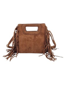 MARCO MAZZINI Hnědá semišová shopper kabelka s třásněmi