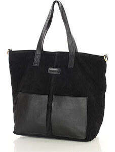 MARCO MAZZINI Černá semišová shopper kabelka