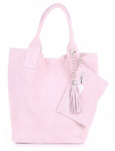Kožené kabelka shopper bag Genuine Leather pudrová růžová 801