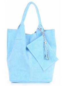 Kožené kabelka shopper bag Vittoria Gotti světle modrá VF9802