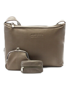 Arwel Šedohnědá kožená sada dámské kabelky, peněženky a klíčenky Cristina
