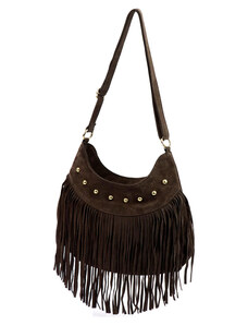 Kabelka z broušené kůže Luka 25-012 tmavě hnědá