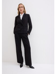 • Tvar jablka – zvol široké nohavice, palazzo nebo rovný střih, který vizuálně vyváží horní část těla. Vyhni se příliš upnutým modelům kolem břicha.