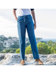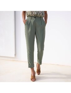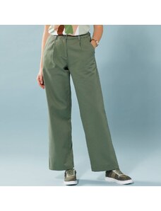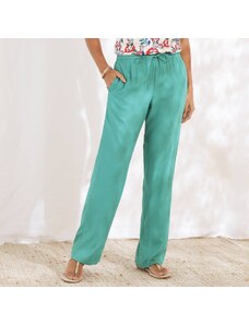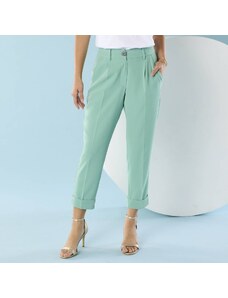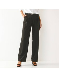 • Tvar jablka – zvol široké nohavice, palazzo nebo rovný střih, který vizuálně vyváží horní část těla. Vyhni se příliš upnutým modelům kolem břicha.