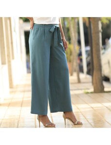 Blancheporte Široké 7/8 kalhoty s pružným pasem a páskem, pro menší postavu zelená