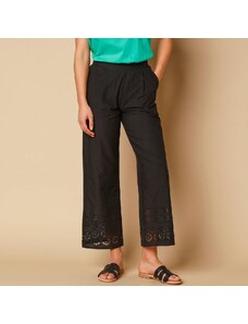 Blancheporte Plisované široké 7/8 kalhoty s pružným pasem černá