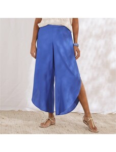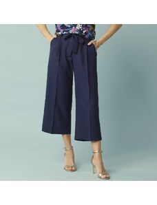 Blancheporte Široké 7/8 kalhoty s pružným pasem a páskem, pro menší postavu nám. modrá