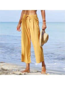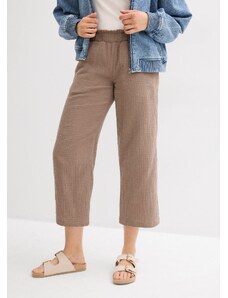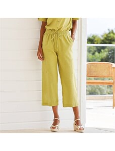 Bonprix Kalhoty Culotte z lehké směsi se lnem, délka po lýtka béžová Žena