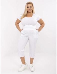 BASIC Bílé dámské plus size 3/4 kalhoty s viskózou -white Bílá