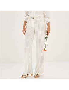 Blancheporte Široké pruhované kalhoty s puky a příměsí lnu bílá