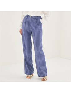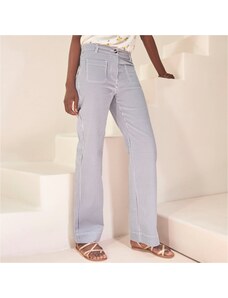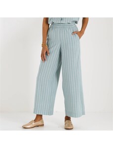 Blancheporte Široké pruhované kalhoty s puky a příměsí lnu modrá