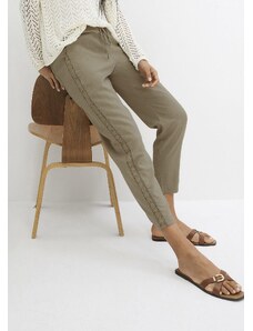 Bonprix Lněné kalhoty s krajkovou vsadkou po straně, nad kotníky zelená Žena