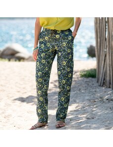 Blancheporte Zúžené kalhoty s pružným pasem a potiskem khaki