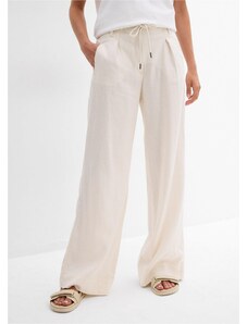 Bonprix Dlouhé palazzo kalhoty se lnem béžová Žena