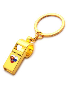 Alfa Klíčenka s píšťalkou, vlajkou Slovenska a nápisem Bratislava - zlatá