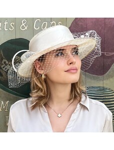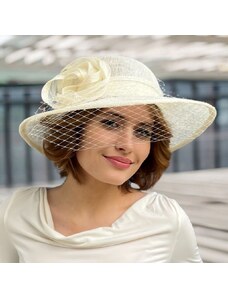 KRUMLOVANKA Slavnostní dámský klobouk se závojem od Krumlovanky 100% Sisal krémový Cha-KDSL-20Z/KRE