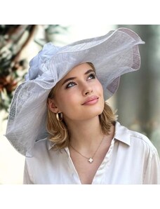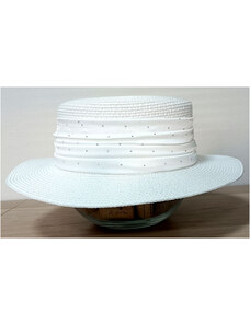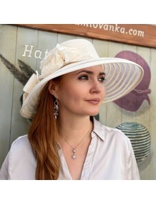 KRUMLOVANKA Dámský svatební slavnostní klobouk bílý s širokou krempou- C-053