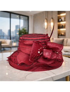 KRUMLOVANKA Dámský luxusuní klobouk vlněný - barevný- asymetrický Handcrafted Made in Italy Co-P-025