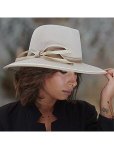 KRUMLOVANKA Luxusní dámský klobouk Big brim - styl fedora - vlněný -béžový Made in Italy Co-P-016
