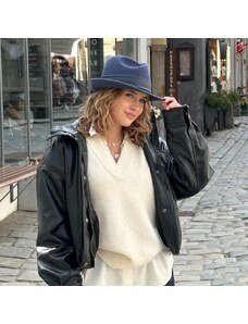 KRUMLOVANKA Dámský klobouk vlněný - modrý - styl Fedora malá krempa Handcrafted Made in Italy Co-P-054