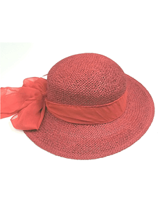 KRUMLOVANKA Dámský slavnostní klobouk se závojem - lososový - 100% Paglie -Fedora-C-096