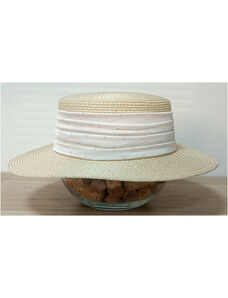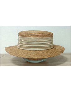 KRUMLOVANKA Luxusní slaměný boater klobouk slavnostní Canotier smetanový - 100% paglie C-074