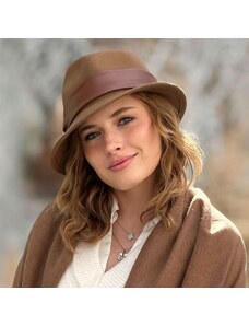 KRUMLOVANKA Dámský vlněný klobouk - hnědý styl fedora Handcrafted Made in Italy Co-P-039