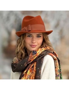 KRUMLOVANKA Dámský klobouk vlněný - zrzavý - styl Fedora malá krempa Made in Italy Co-P-002