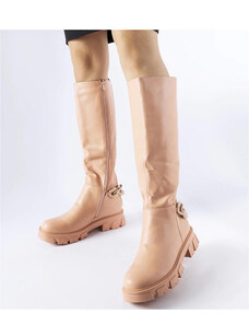 Dámské kozačky s krajkovým vzorem na plochém podpatku S.Barski HY61-8022 Béžové