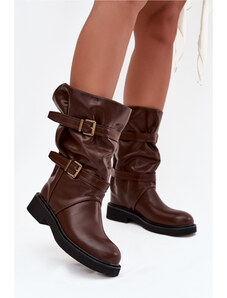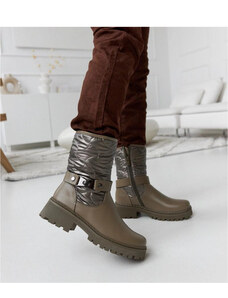 Boto Dámské kozačky s obráceným horním lemem s přezkou a stříbrným zipem Vyhřívané hnědé Bressa