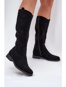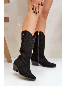 Dámské kozačky s otevřeným vzorem na nízkém podpatku S.Barski HY61-8022 Černé