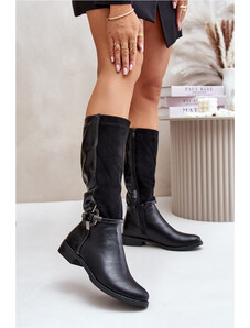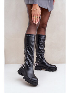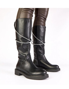 Boto Kozačky Na Plochém Podpatku S Řetězem Černé Nauricette