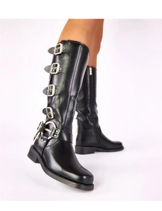 Boto Vlnité dámské kozačky do poloviny lýtek s pásky a sponami Černé Halvessa