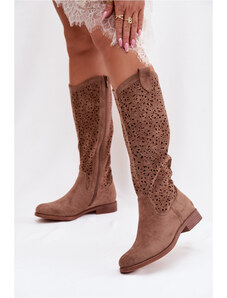 Dámské perforované kozačky na plochém podpatku S.Barski HY61-8023 Hnědé