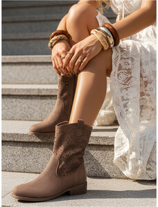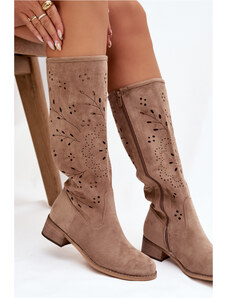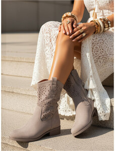 Dámské prolamované kozačky na nízkém podpatku béžové FashionStreet ZY1433