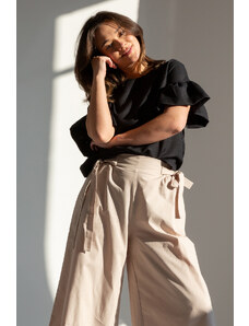 Blancheporte Jednobarevné široké šortky s mašlí v pase hnědošedá