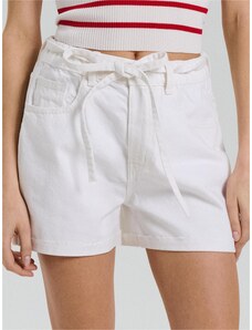 Sinsay - Džínové paperbag šortky s páskem - bílá