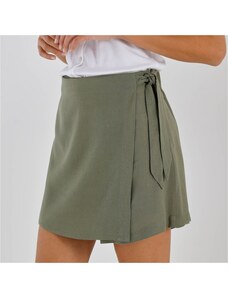 Blancheporte Jednobarevné sukňové šortky se zavinovacím efektem na knoflíky olivová