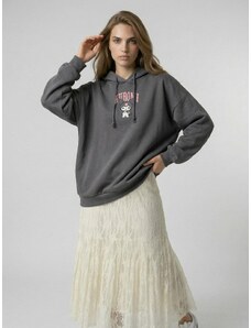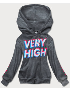 J.STYLE Tmavě šedá dámská tepláková mikina s potiskem (26012)