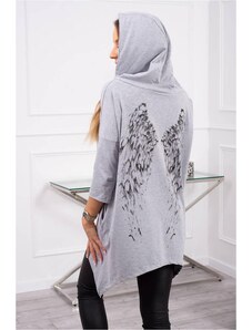 MladaModa Mikina s kapucí s potiskem křídel na zádech model 9140 šedá