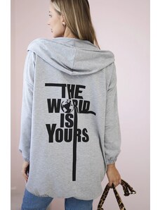K-Fashion Mikina s potiskem "The world is yours" šedá