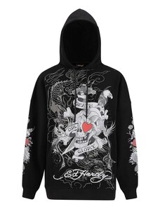 Ed Hardy Mikina 'Death Or Glory Love' šedá / červená / černá / bílá